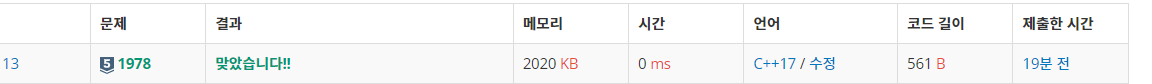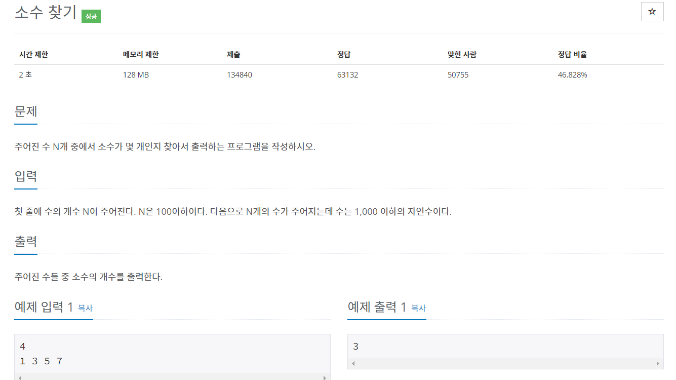 1 예외 처리를 안해줘서 소수로 판별해가지구 왜 틀렸는지 찾는데 좀 걸렸네 바보인듯