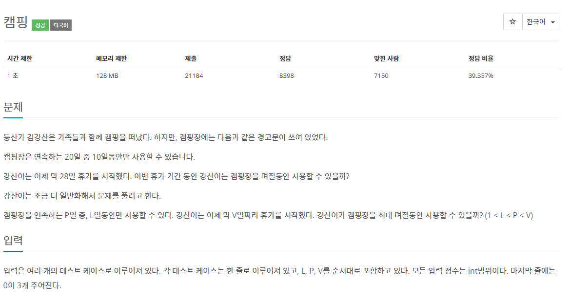 예를 들어 20일동안 휴가를 갈때 8일동안 3일 캠핑장을 이용할 수 있다고 할때
