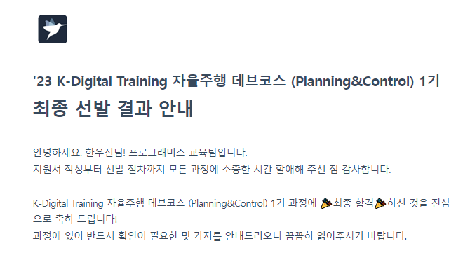 내가 원하던 교육에 지원해서 합격했다 ㅎ